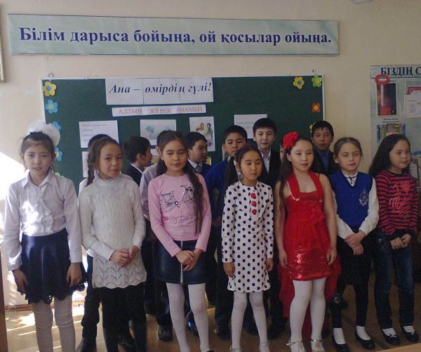 4 «В» сыныбында 8 наурыз мерекесіне орай оқушыларға анаға деген мейірімді, сүйіспеншілікті арттыру, үлкенге ізет, кішіге үлгі бола білуге үйрету мақсатында «Ана - өм…