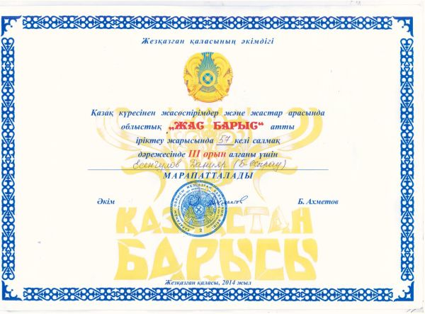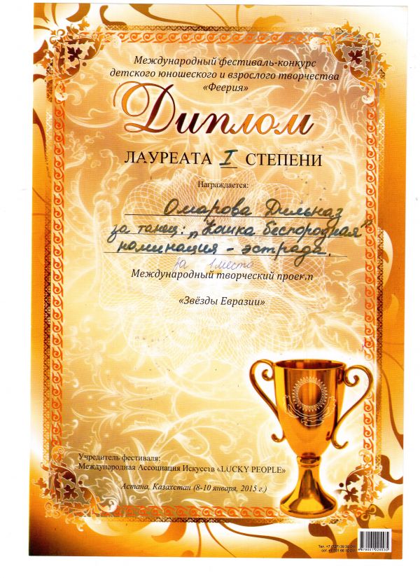 Астана қаласында өткен жасөспірімдер арасындағы халықаралық байқауда Қабыкенова Аружан, Омарова Дильназ дипломмен марапатталды.