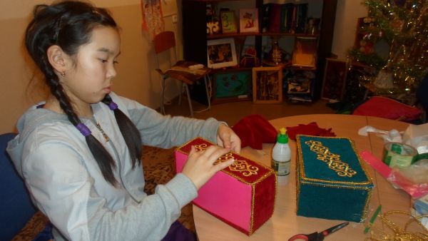 Шебер қолдар үйірмесіндегі оқушылар қол өнері.