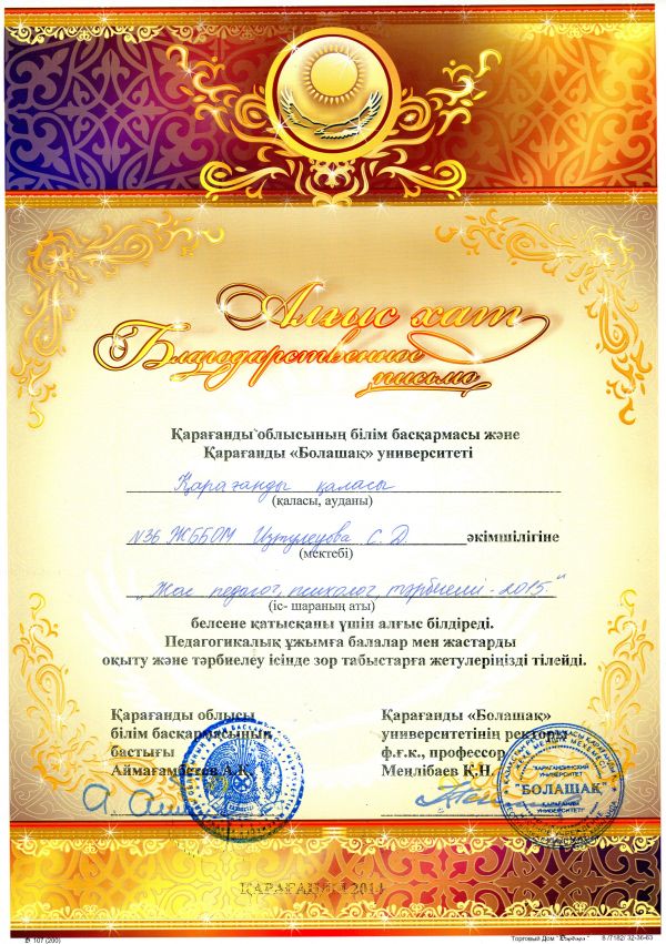 «ЖАС ПЕДАГОГ, ПСИХОЛОГ, ТӘРБИЕШІ-2015 » сайысы