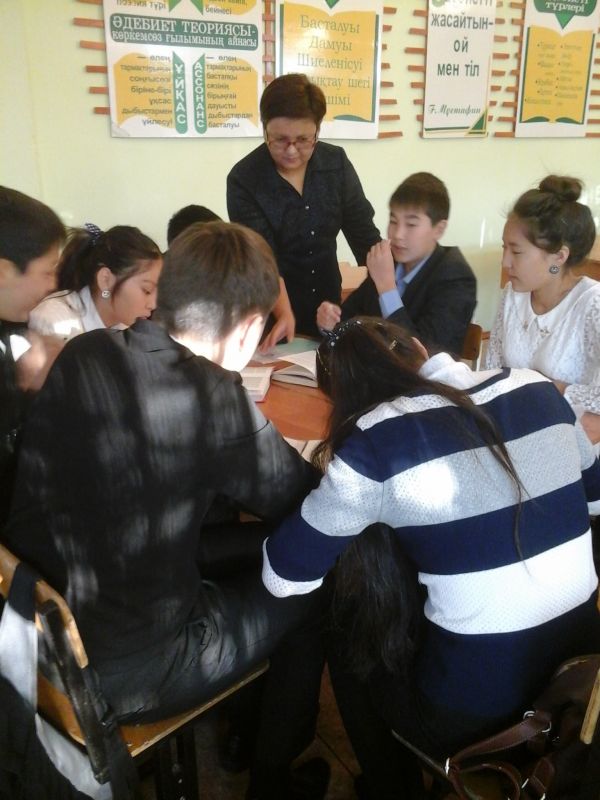 23.09.14 ж. қазақ тілі және әдебиет пәнінің мұғалімі Рахимжанова Қымбат Бухарбековна 9 «Б» сынып оқушыларымен «Өнер алды – қызыл тіл» тақырыбында мақал-мәтел сайысын өткізді.