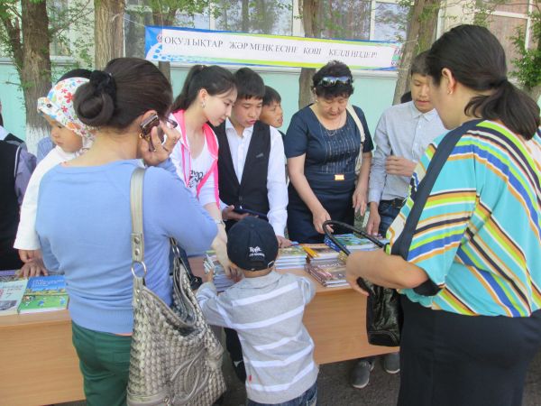 Отбасы мереке күні мектеп алдында мектеп кітапханашылары оқулықтар жәрмеңкесін ұйымдастырды. Ата-ананың көмегімен сатып алынған оқулықтарды жарты бағаға, сапалы түрде, оқу жылына сәйкес оқулықтар жә…