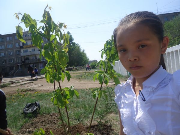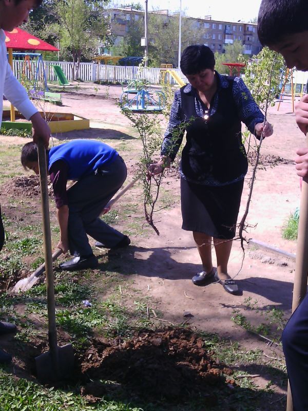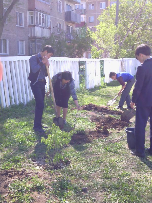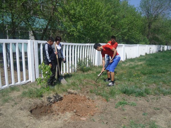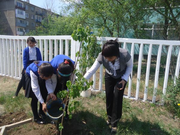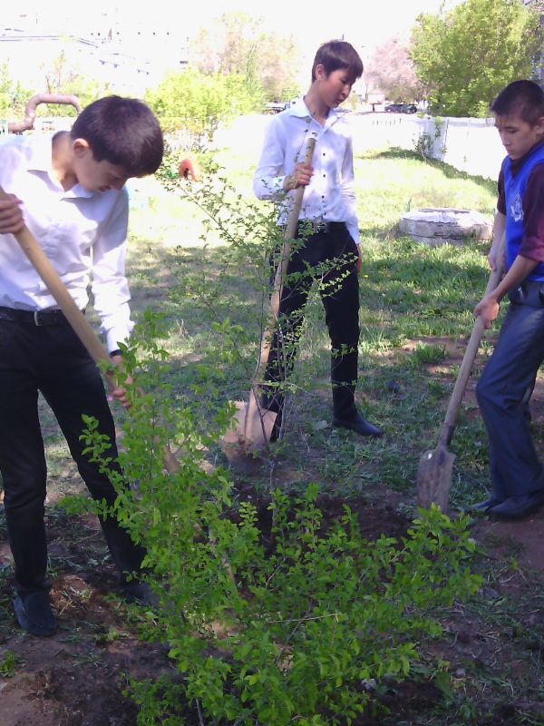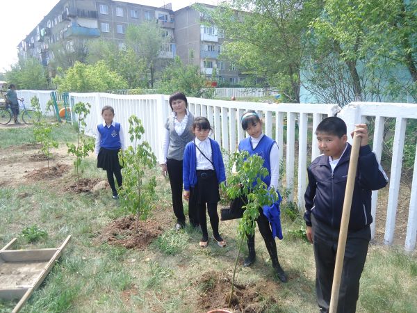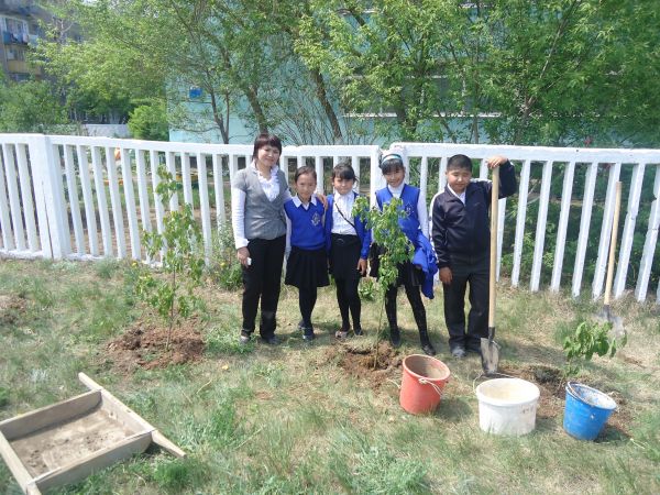 Көгалдандыру мақсатында 16 мамыр күні сынып жетекші Н.Каппаровнаның басшылығымен 5 "А" сыныбы мектеп жанына талдар отырғызды. Қазақ халқы 7 санын қасиетті сан деп есептеген, сол себепті оқ…