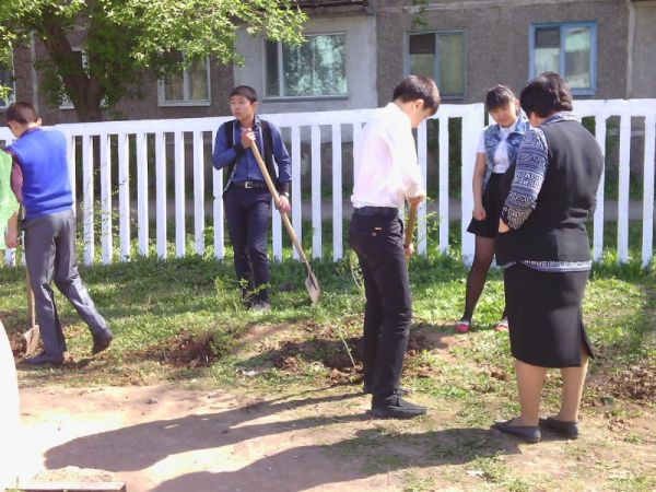 8 "А" сынып оқушылары мектеп жанын көгалдандыруға ат салысты.Сынып жетекшісі: Абдыгаликова Р.К.