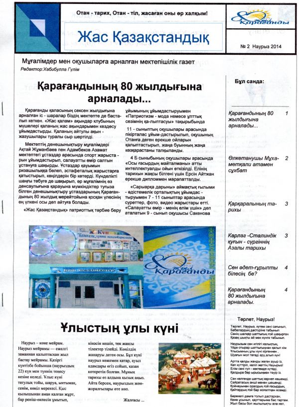 С 24 марта по 28 марта 2014 года в городе Астане проходил VIIIМеждународный фестиваль – конкурс детского творчества «Ақ көгершін», где нашему ученику 7 «Б» класса Әкімо…