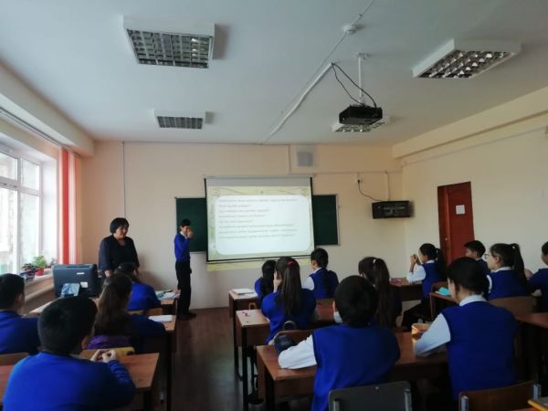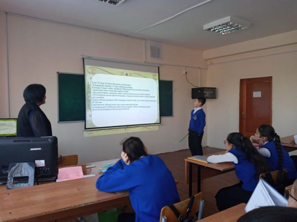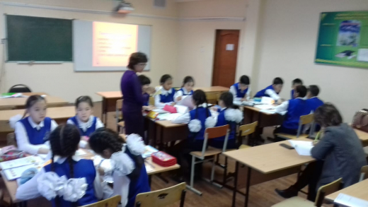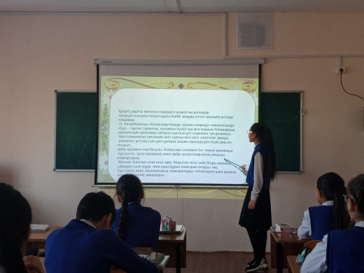 Учителями русского языка были проведены открытые уроки. Тайжанова Т.У. провела урок- путешествие в 4 классе по теме «Архитектурные памятники».Урок прошел интересно.
