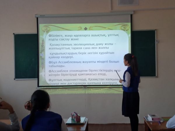«Н. Назарбаев. Қазақстан халқы Ассамблеясы» тақырыбында сынып сағаты өтті.