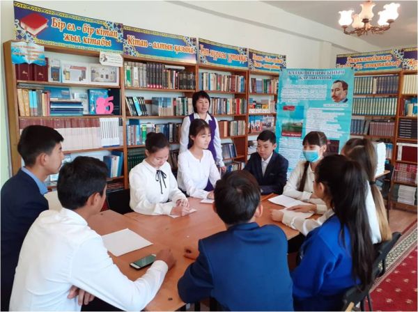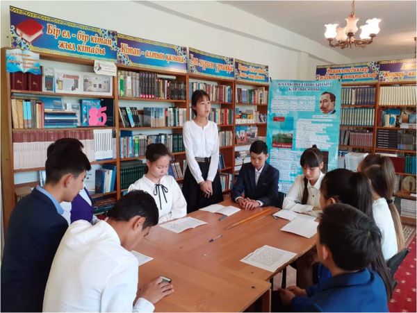 15.10.2019ж күні Мектебіміздің 9 "Ә" сынып оқушыларымен Қазақ тілі пәнінің мұғалімі Заркеева Д. Н., кітапханашы Рахманова Е. Н. бірлесе отырып "Қазақ поэзиясының қарлығашы" атты С. Сейфуллиннің 125 жылдығына орай кітапханада дөңгелек стол өткізілді.