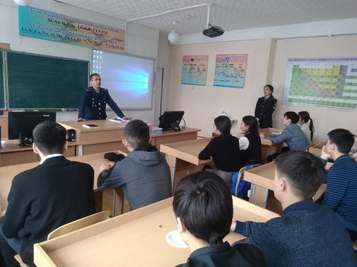 19.04.2019ж. №36 ЖББ орта мектебінің 10-11 сынып оқушыларына дұрыс мамандық таңдау мақсатында үгіт насихат жүргізіп, құқық бұзушылықтың алдын алу бойынша дәріс оқыды.
