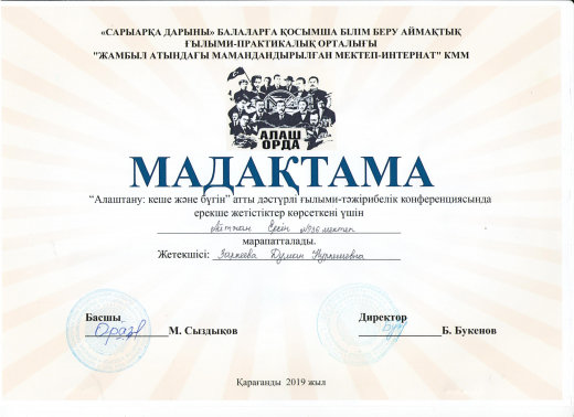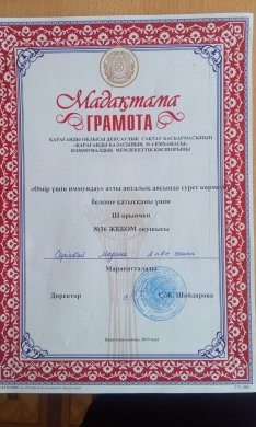 Республикалық  ғылыми педагогикалық «QAZAQSTAN PEDAGOGY» байқауында үздік портфолиосынан 3- орынға ие болған үшін Мутатын Кулзира мараппаталды.