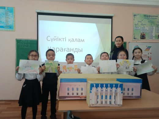 Сүйікті қалам -Қарағанды тақырыбында 2"Б" сыныбында сынып сағаты өтті. Мақсаты: өз Отанын , туған жерін сүюге тәрбиелеу және оқушыларға Қарағанды қаласының ірі табиғи ресурс көзі, қа…