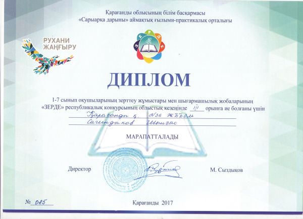 4 «Б»сынып оқушысы Тусжанова Аружан Халықаралық «Жас талант» байқауына қатысып IIIорынды иеленіп Дипломмен марапатталды.…