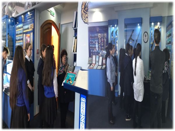 Мектеп инспекторы Н.Байбосыновамен №36 ЖББОМ 9-сынып оқушылары Ішкі істер департаментінің мұражайына саяхат жасады.