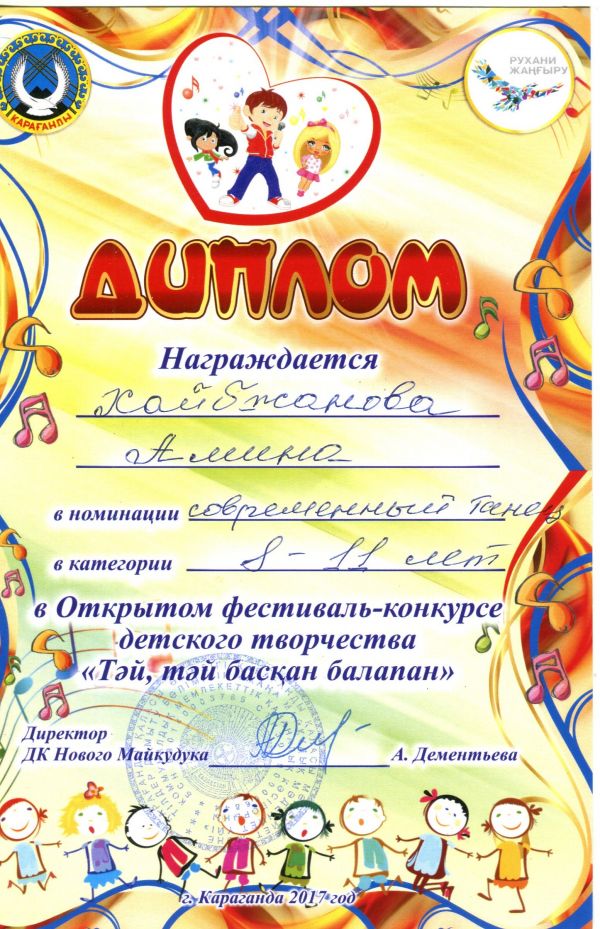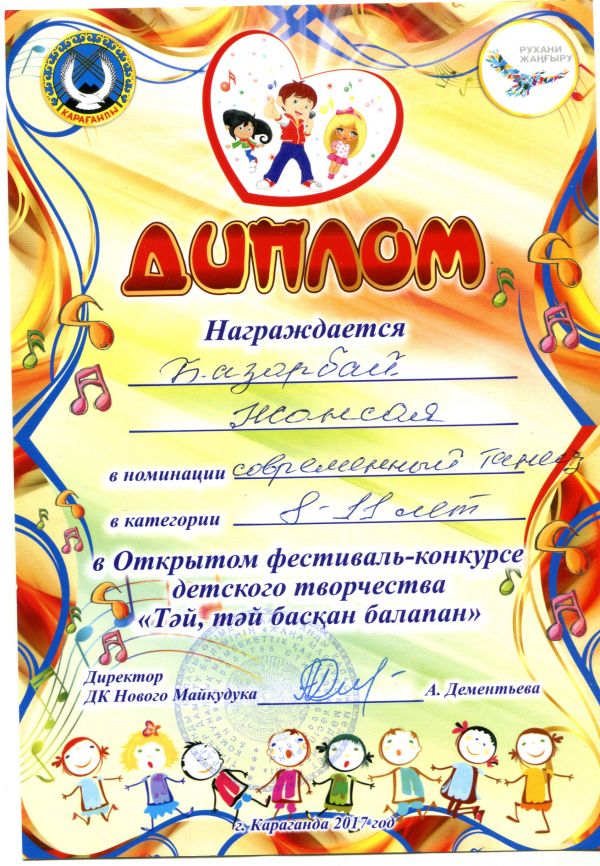 22.10.2017ж «Әсем әнім» атты қалалық IIашық вокалдық байқауда 4 «Б» сынып оқушылары би өнерімен арнайы сыйлықтармен марапатталды.