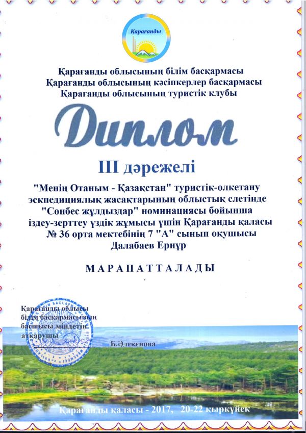 Қарағанды облысының білім басқармасының және туристік клубының ұйымдастыруымен Қарқаралы өңірінде өткен «Менің Отаным - Қазақстан» туристік-өлкетану экспедициялық жасақтарының слет…