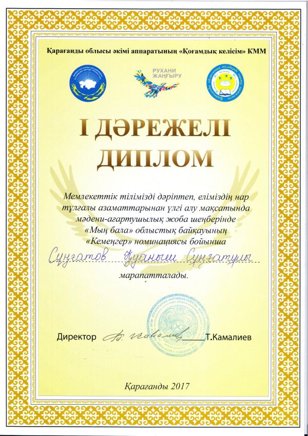 Қарағанды облысы әкімі аппаратының «Қоғамдық келісім» КММ және Қарағанды облысының тілдерді оқыту орталығының ұйымдастыруымен өткен «Кемеңгер» шығармашылық жоба…