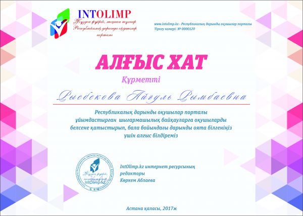 4"В" сынып оқушысы Мұхамбетқали Қазбек Республикалық дарынды оқушылар парталымен ұйымдастыруымен қашықтан өткізілген эксспресс байқауға қатысып, шығармашылық дарынымен, білімділігімен көзг…