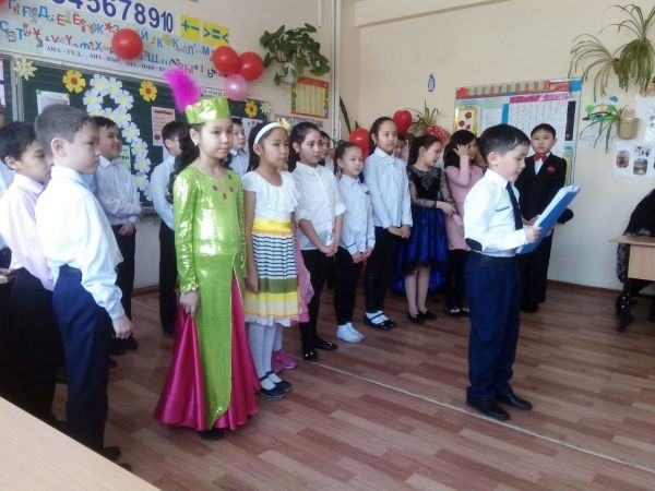 1"А" сыныбында 8-наурыз мейрамы қарсаңында "Ана-гүл, ана-өмір шырағы" атты тəрбие сағаты өтті. Сынып жетекшісі: Сексеналина Д.К.