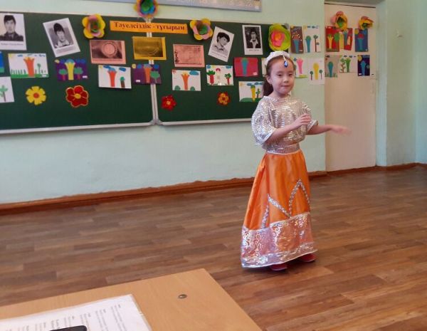 3 «А» сынып оқушылары тәуелсіздікке арналған тақпақтар мен әндерін орындады. Сынып жетекшісі М.Ж.Абдикенова.