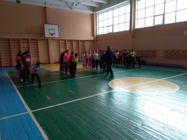 Дене шынықтыру апталығы “Денің сау болса, бәрін аласың” атты іс шарасы аясында өткен 4-5 сыныптар арасында эстафетадан өткен жарыс деп өткізген мұғалімдер:Д/Ш пәні мұғалімі  Шалдыба…