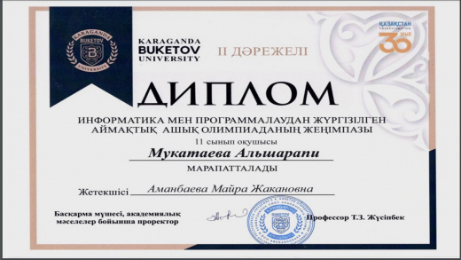 Академик Е.А. Бөкетов атындағы Қарағанды университеті математика және ақпараттық технологиялар факультетінің базасында 16.02.2022 мен 17.02.2022 күндері өткен информатика мен программалаудан жүргізі…