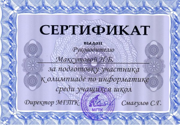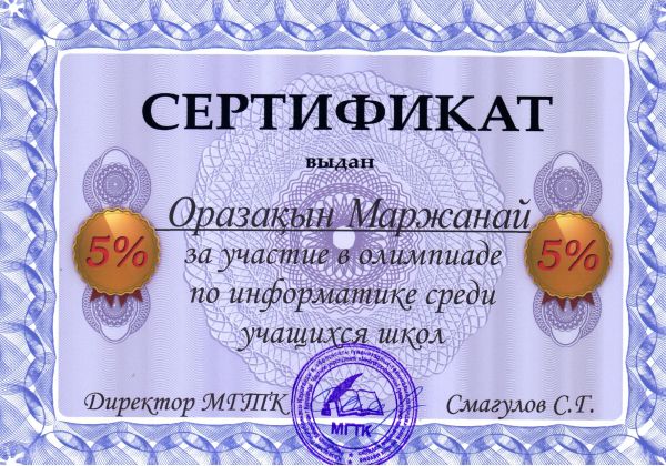 МГТК-да  9 сынып мектеп оқушылары арасында информатика пәні бойынша өткізілген олимпиадаға қатысқаны үшін №36 ЖББОМ 9 сынып оқушылары: Амангелді Ания, Сарманбаева Дильназ, Ахметжан Индира, Рымб…