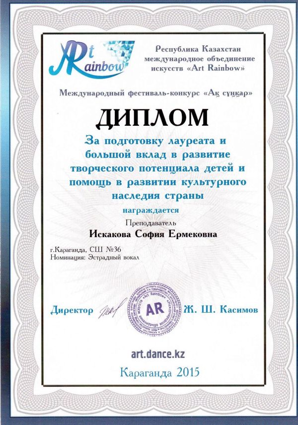 20 декабря в городской школе искусств №2 по инициативе "ART RAINBOW" был проведен конкурс исполнение песен "АҚ СҰҢҚАР" . в номинации эстрадного &…