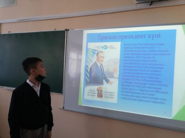 1-желтоқсан "Тұңғыш елбасы күніне орай 7 "Ә" сыныбында «Елбасының дара жолы» атты