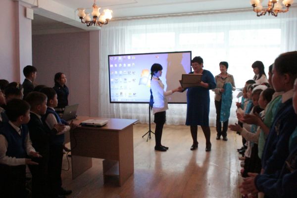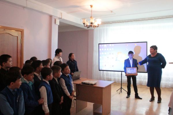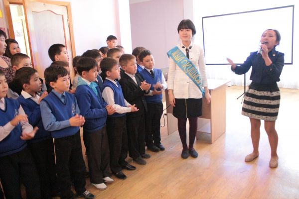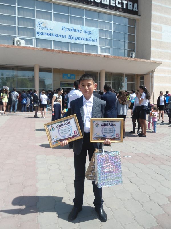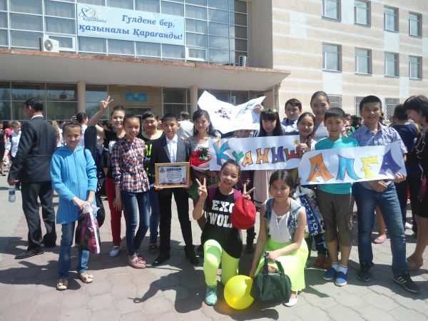 Дүйсенбілік саптық жиында "Жыл оқушысы-2014" қалалық байқауының жеңімпаздарын құттықтады. Бас жүлдені жеңіп алған 9в сынып оқушысы Сакенова Аида, 7В сынып оқушысы Сұңғатов Қуанышқа -…