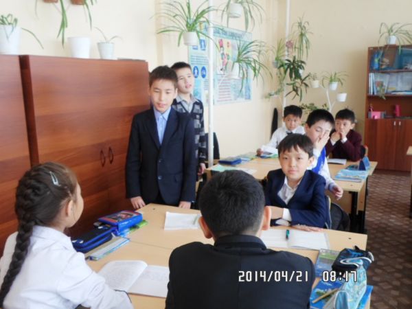 3 "Б" сыныбында "Көңілді көктем" тақырыбында тәрбие сағаты өткізілді. Онда оқушыларға көктем туралы сұрақ-жауап түрінде өткізілді. Сынып жетекшісі: Жашкеева А.Қ.