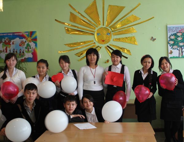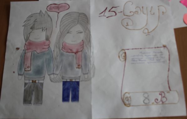 15 - сәуір Ғашықтар күніне 8 сынып оқушылары ерекше құттықтау парақтарынан акция өткізді