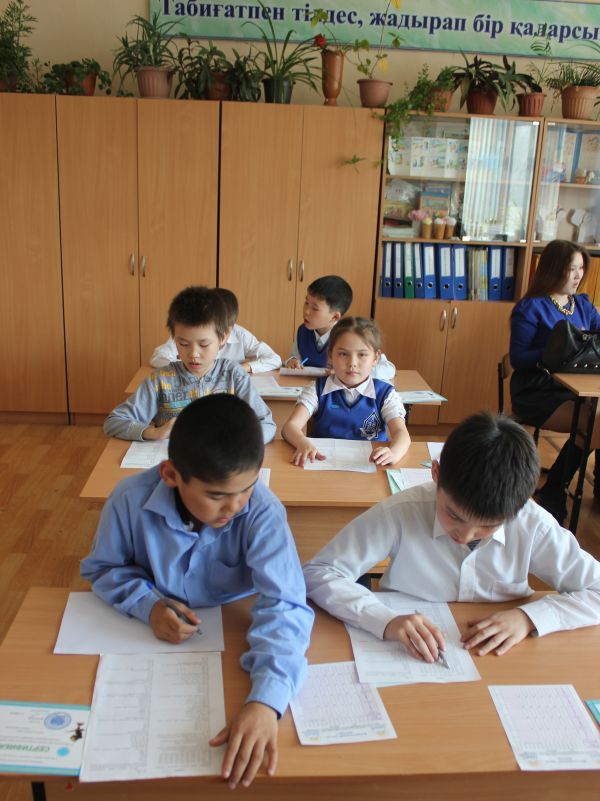 Бастауыш сынып оқушылары "Бастау" математикалық турниріне қатысу үстінде...