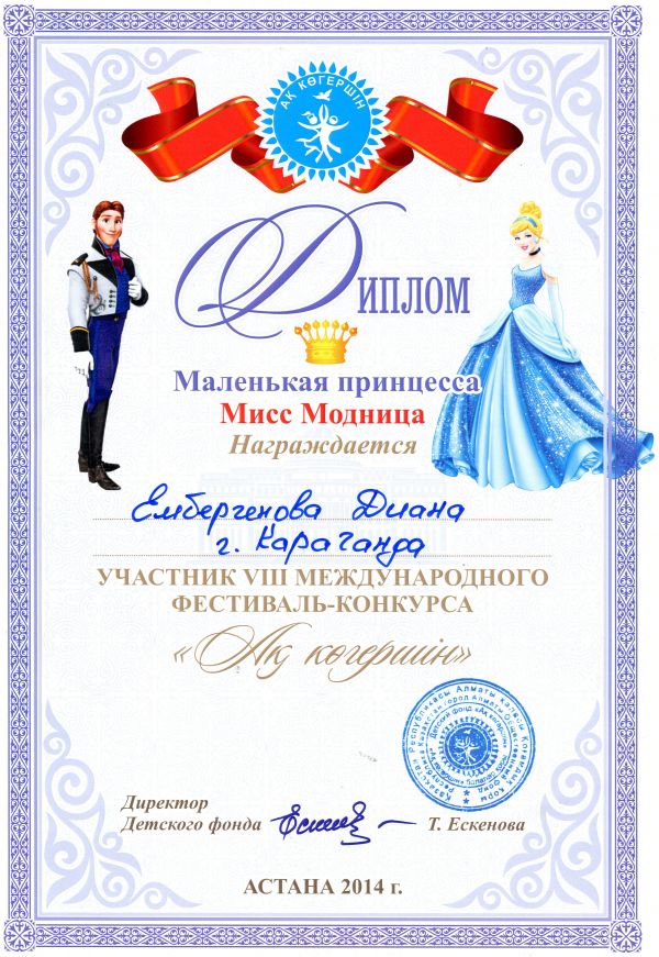 Мектебіміздің 1-сынып оқушысы Ембергенова Диана "Ақ көгершін" Халықаралық фестивль-конкурсына қатысып, ІІ дәрежелі лауреат "Кішкентай ханшайым" болып, дипломмен марапатталды.Жете…