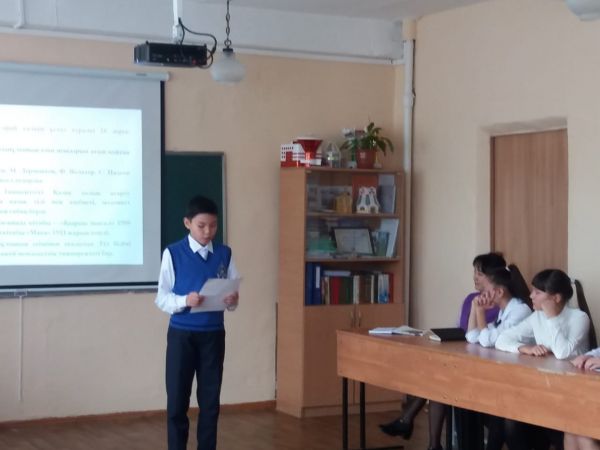 Мектебімізде 11 қыркүйек күні Тілдер мерекесіне орай «Ахмет Байтұрсынұлы - қазақ халқының рухани көсемі» атты дөңгелек үстел 8 «А» сынып оқушыларымен қаза…