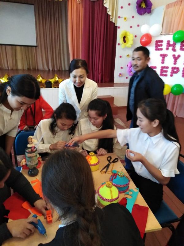 27.09 2018 .күні«ЕҢБЕК ТҮБІ БЕРЕКЕ » атты Қарағанды Гуманитарлық колледж мұғалімдермен ,мектеп оқушылармен , студенттер арасындағы сабақтастықта «Шебер сынып&raqu…