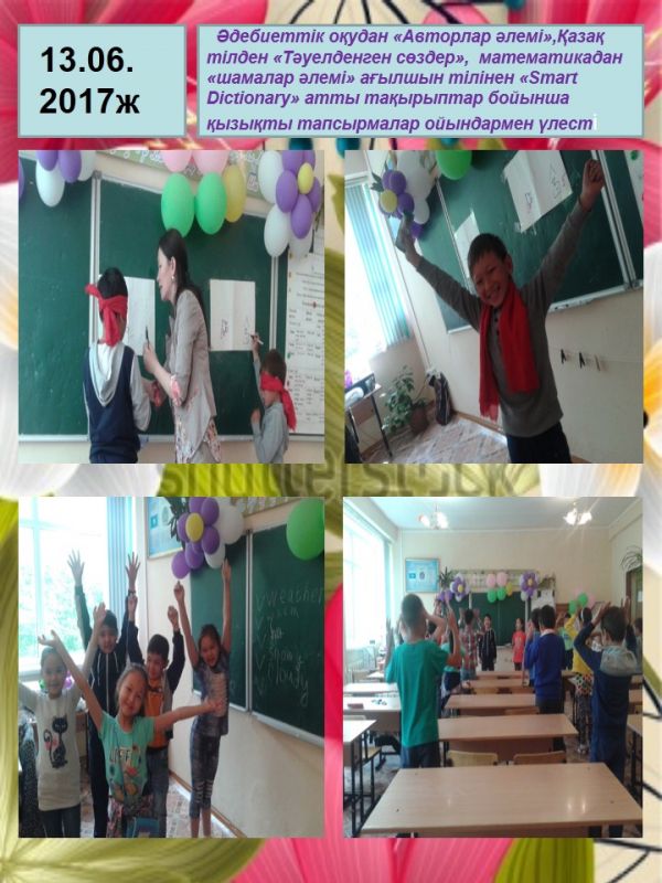 Барлық пәндерге қатысты ережелер ойын қайталанды. Логикалық есептерді ойын түрінде шығарды.Балалар тапсырмаларды үлкен қызығушылықпен орындады. Әр оқушы өз суретін әңгімелеп, түсініктеме беріп отырд…