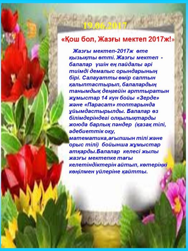 19.06.2017 «Қош бол, Жазғы мектеп 2017ж!»