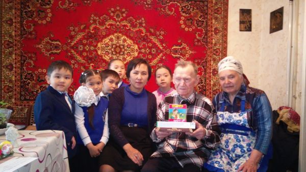 05.05.2016г. учащиеся 2 «Б» класса посетили ветерана войны, участницу тыла Есюнину Анну Кондратьевну. Они спели песни, читали стихи.Кл.руководитель: Айтбекова Алмагуль.