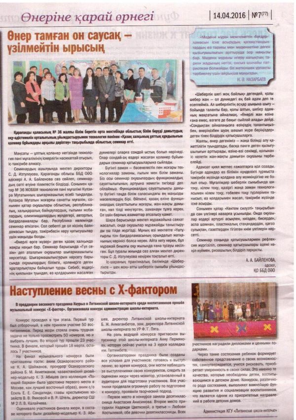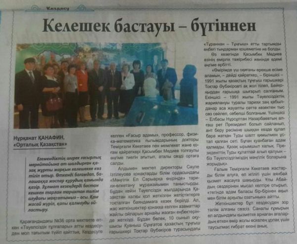 В газете «Орталық Қазақстан» в № 74-75 от 07.05.2016г. была опубликована статья журналиста Нұрқаната Канафина "Келешек бастауы - бүгіннен".