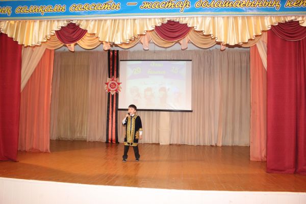 17.04.2015ж мектебімізде өткен «Әнші балапан байқауында» 1 «Б»сынып оқушысы Дәрібай Айдардың орындауындағы Жаяу Мұсаның «Ақ сиса» әні патриоттық рухпен орын…