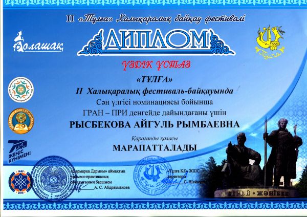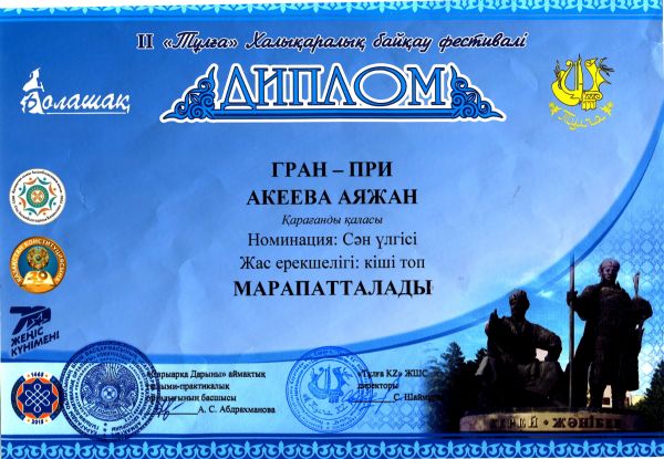 1 «в» сынып оқушысы Акеева Аяжан ІІ-ші «Тұлға» Халықаралық байқау фестивалінен диплом және ГРАН-ПРИ жеңіп әкелді. «Өнер білім көке де жеткізеді , көпке де жеткізеді&raq…