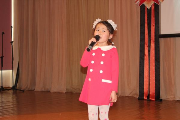 Әнші, жыршы, күйші балапан-дей болып келген 1 «В» сынып оқушысы Камалов Әлихан «Домбырының күмбірі» атты өлеңімен ха…
