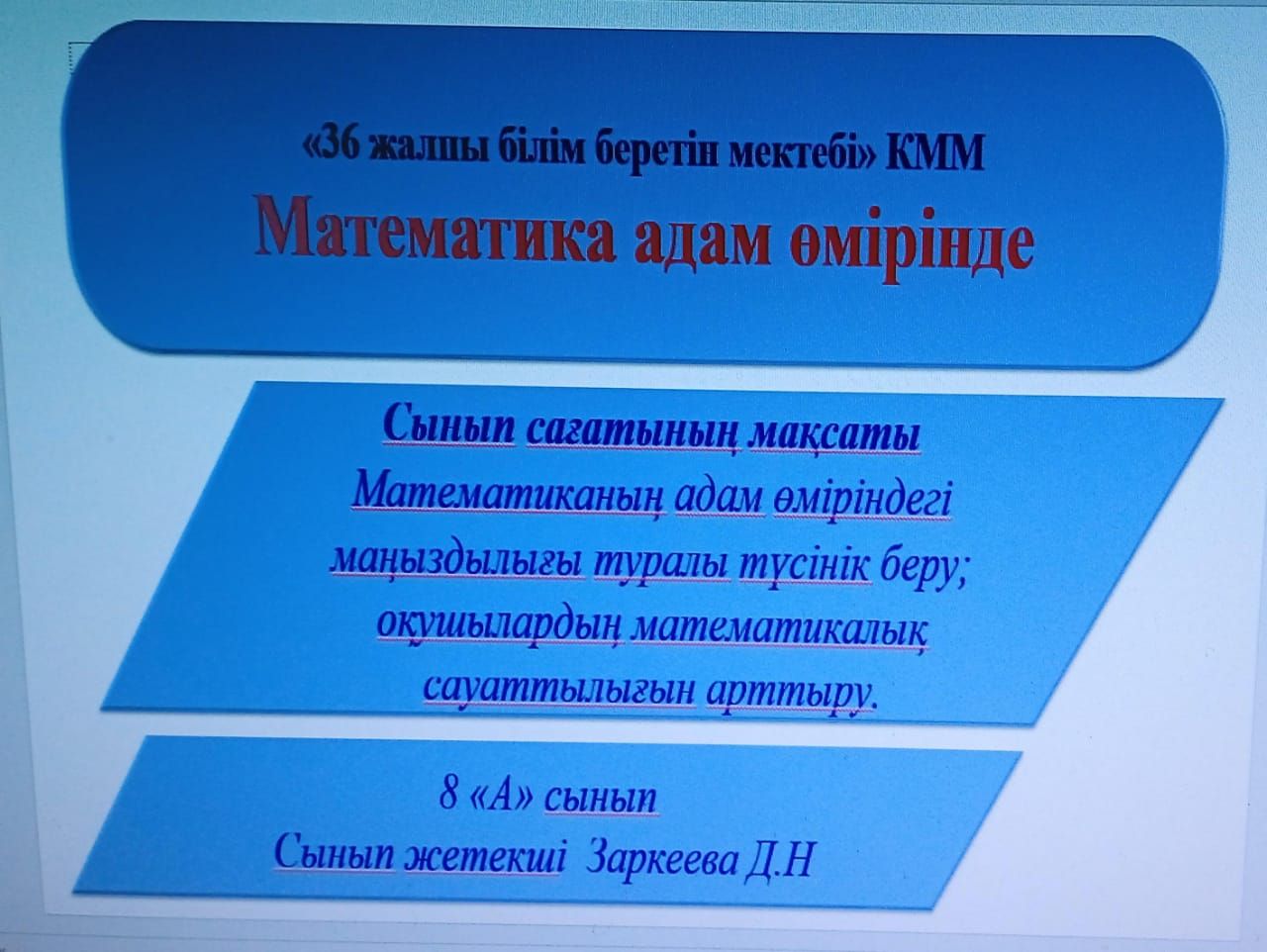 8 "А" сыныппен "Математика адам өмірінде" тақырыбында сынып сағаты өтті. Оқушыларға математиканың адам өміріндегі маңыздылығы туралы түсінік берілді.     Сынып жете…