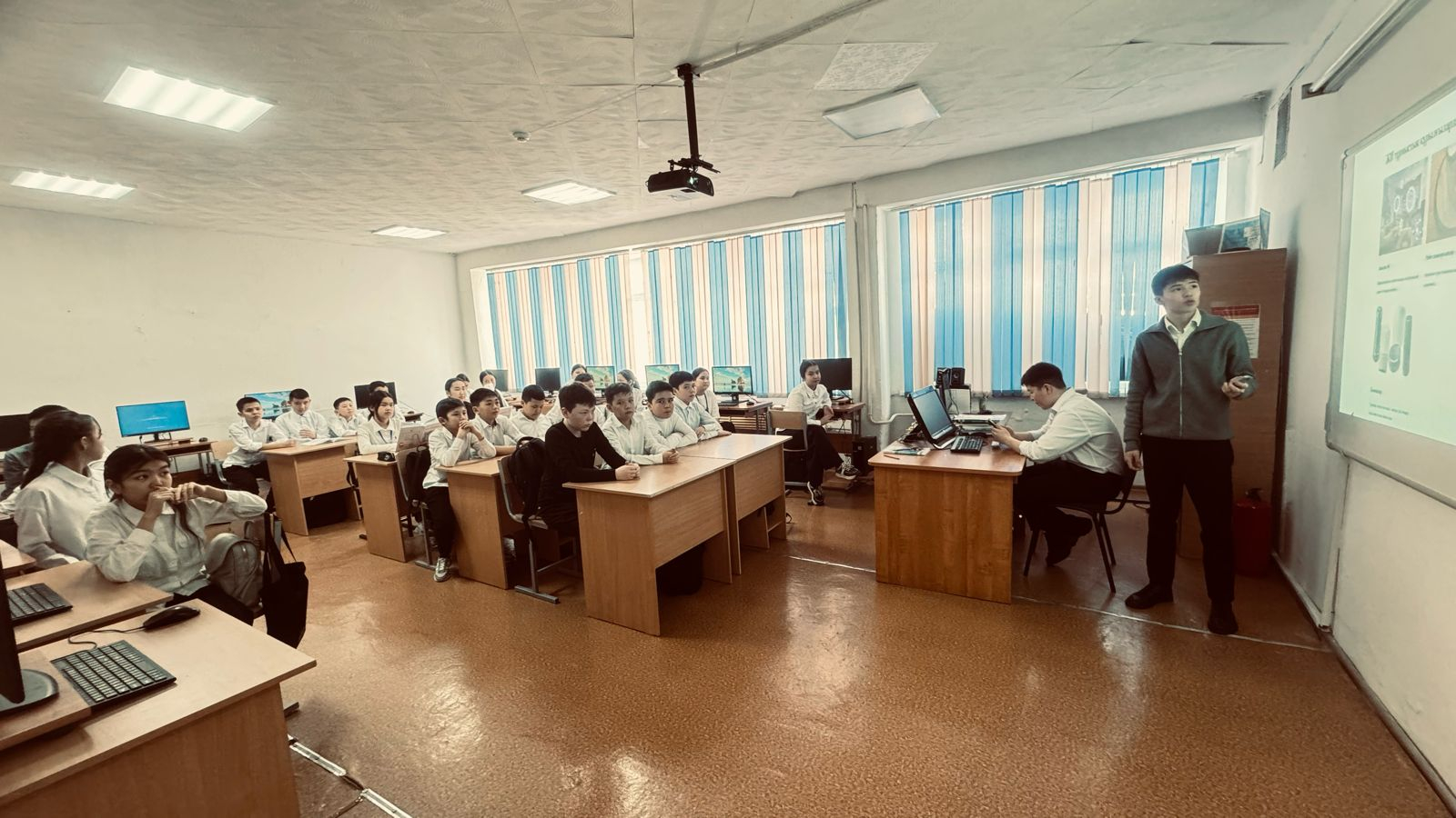 Халықаралық “Компьютерлік ғылым апталығы” аясында    “Қазақстандағы код сағаты” акциясына мектебіміздің 5,6,7 сыныптары қатысты. Информатика пәні мұғалімі: Ерме…