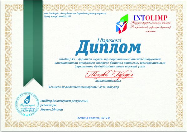 4"В" сынып оқушысы  Тлеубек Нұрәділ Республикалық дарынды оқушылар парталымен ұйымдастыруымен қашықтан өткізілген эксспресс байқауға қатысып, шығармашылық дарынымен, білімділігімен кө…