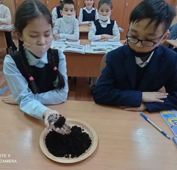 Бастауыш сыныптар арасында «Білім еліне саяхат» апталығында 3 «Ә» сыныбында жаратылыстану пәнінен «Топырақтың қандай қасиеті бар?» тақырыбында а…