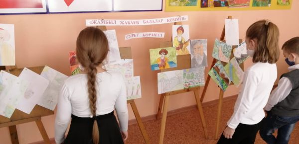 Жамбыл Жабаевтың 175 жылдығына арналған медиа-жоспар аясында 21.04.2021 күні бастауыш сынып оқушылары арасында қазақ тілі пәні бойынша «Жамбыл Жабаев балалар көзімен» атты сурет көрмесі…