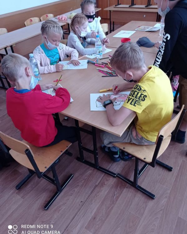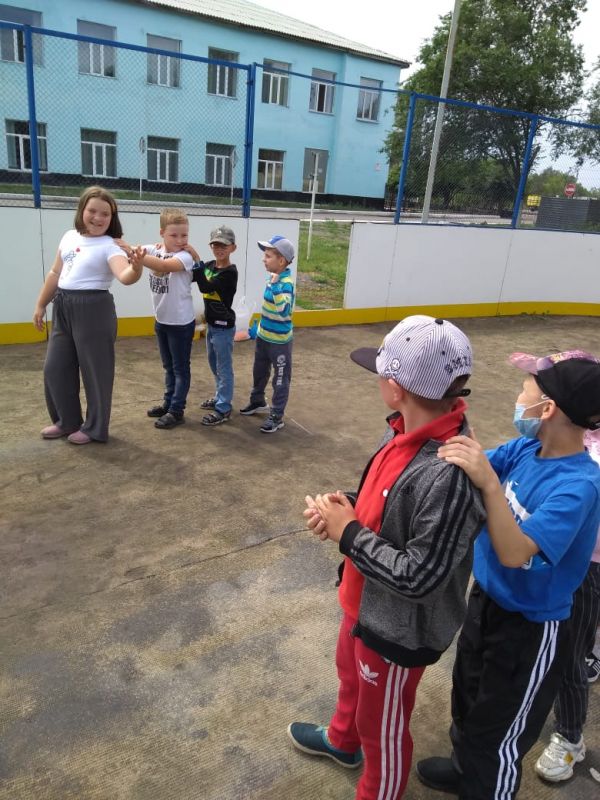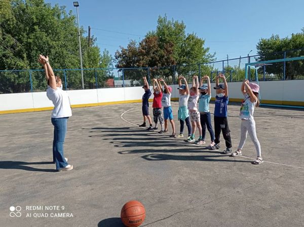 Спорттық-сауықтыру. Мектеп жанындағы "Улыбка" лагерінің 3-ші маусымының бірінші күні спорттық-сауықтыру сабағынан басталып ,мультфильмдер тамашалаумен аяқталды.