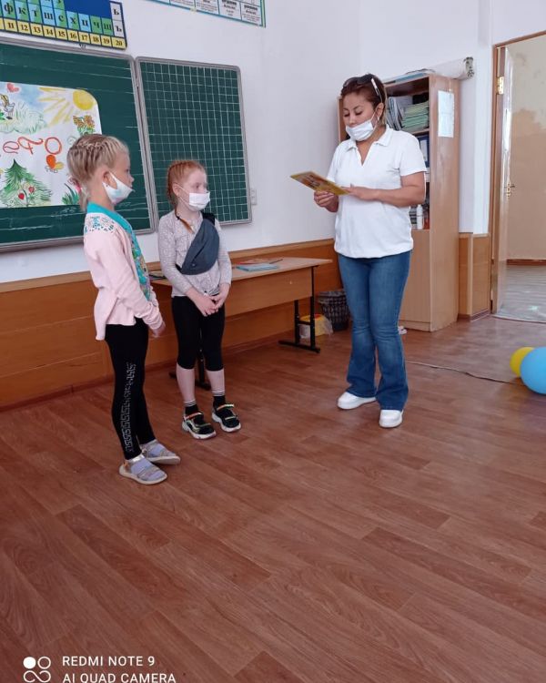 Бүгін таңғы жаттығудан кейін мектеп жанындағы "Улыбка" алаңының балалары "Мойдодыр" мультфильмін тамашалап, "шашты қалай тарауға болады?", "Қолды қалай жуу керек?&…