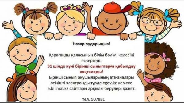 1 сыныпқа қабылдау уақытының тәмамдалуы туралы